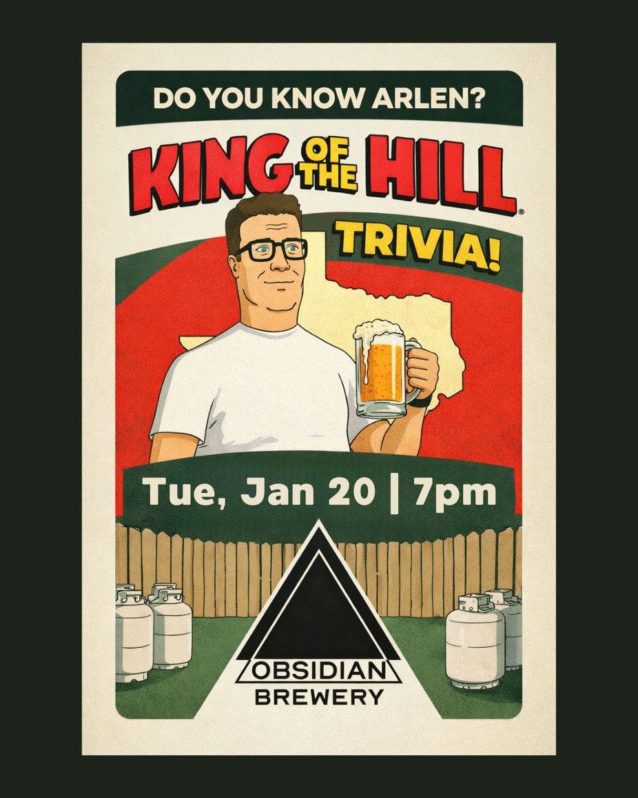Grab a beer and test your knowledge at King of the Hill Trivia Night. Free to play with themed prizes up for grabs. Dang ol’ fun guaranteed.
