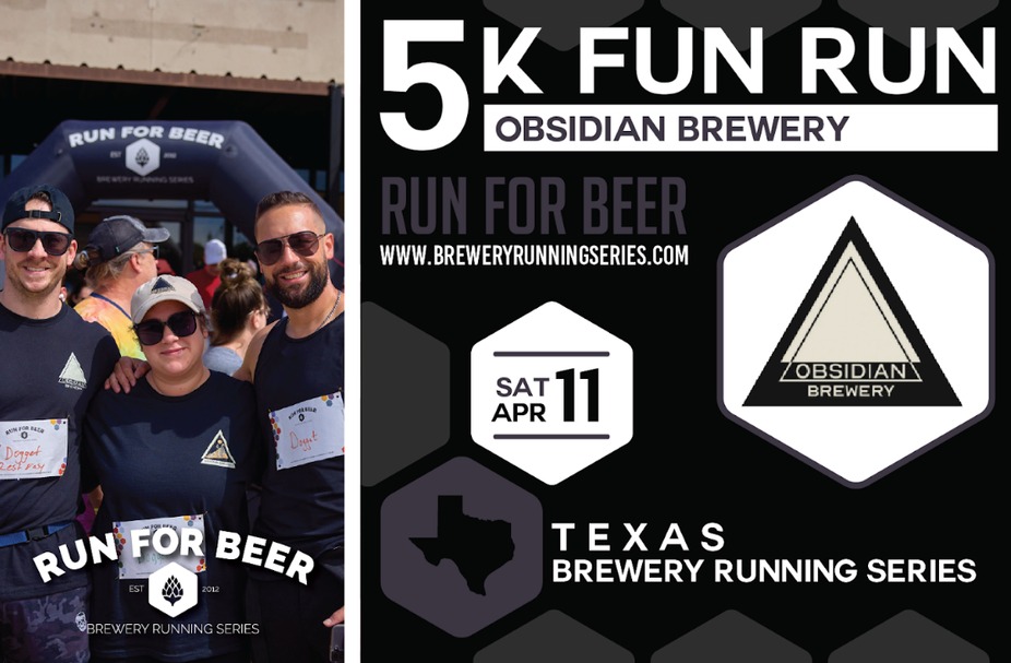 Lace up your running shoes - we've mapped out a 5k-ish course that starts and ends at this awesome taproom in Leander. Run, walk or jog before celebrating with a locally-brewed craft beverage at the finish line. After crossing the finish line, reward yourself with a well-deserved pint of craft beer from Obsidian Brewery. All participants receive: